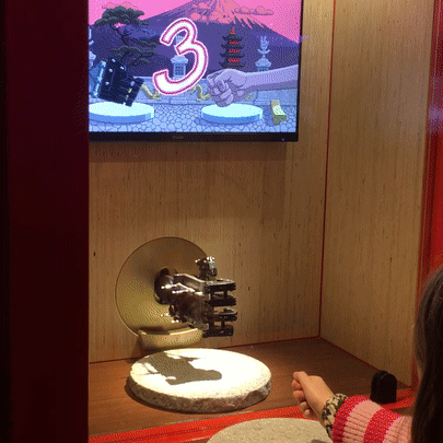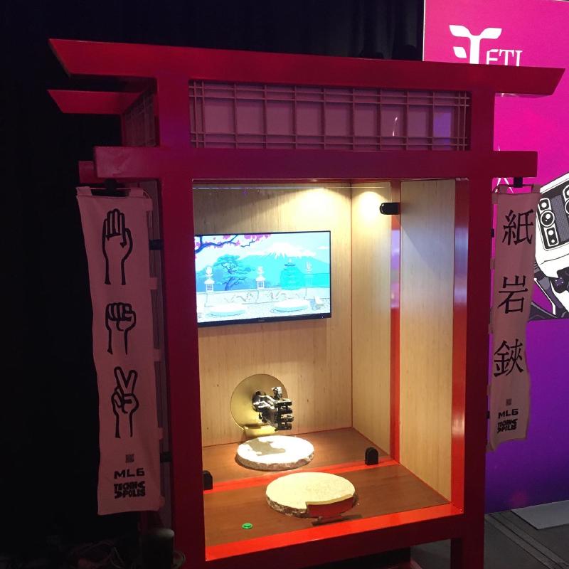 Installation for Technopolis where you battle a robot-hand in a game of Rock Paper Scissors. Spoiler: the robot always wins!