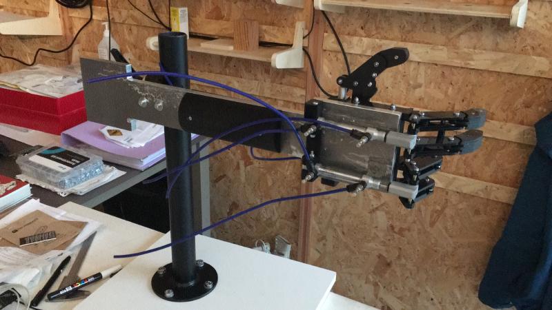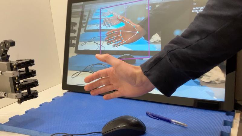 Making use of machine learning powered hand tracking to instantly detect and react to the player. Compressed air is used to move the hand and fingers.