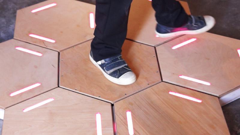 time your steps to complete the puzzles and patterns presented by this foot-controlled arcade experience
